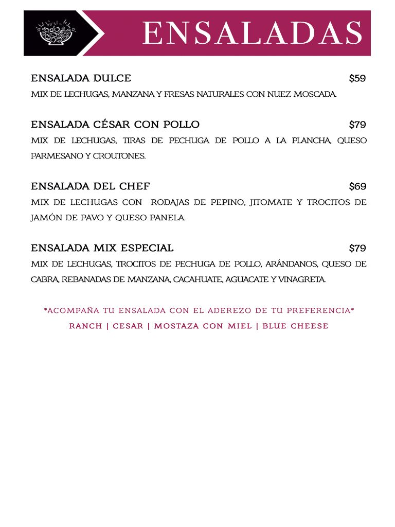 Echa un vistazo a nuestro menú, descubre una variedad de bebidas frías o calientes, según amerite la ocasión. Hablando de nuestros alimentos, encuentra deliciosas entradas para compartir o también platillos individuales.